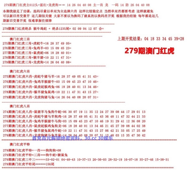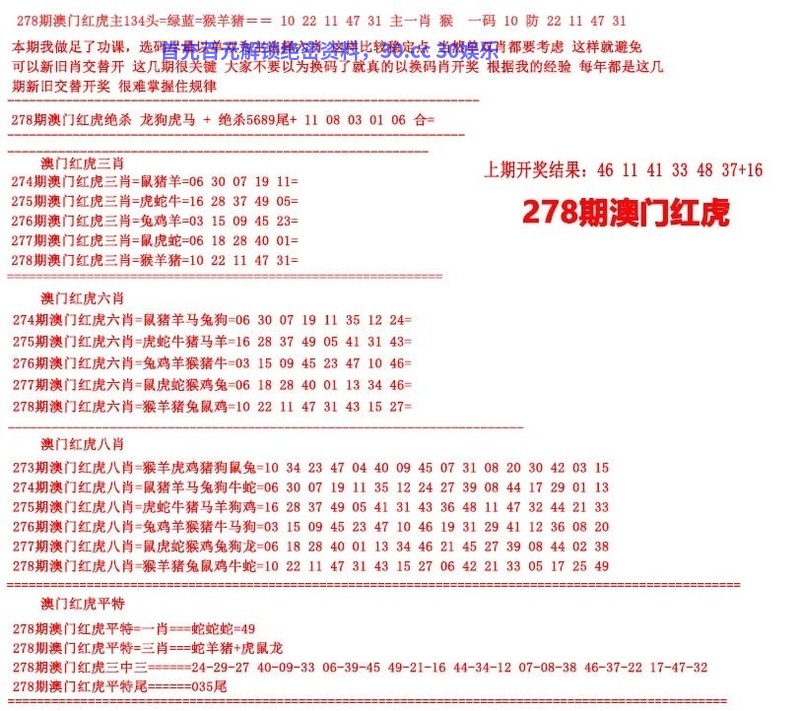 279期:九肖羊龙猴蛇狗猪牛鼠兔27中