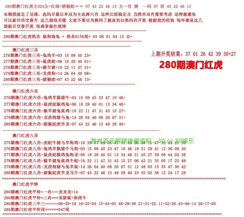 281期:【马蛇龙猴狗兔猪鸡】开:羊47准