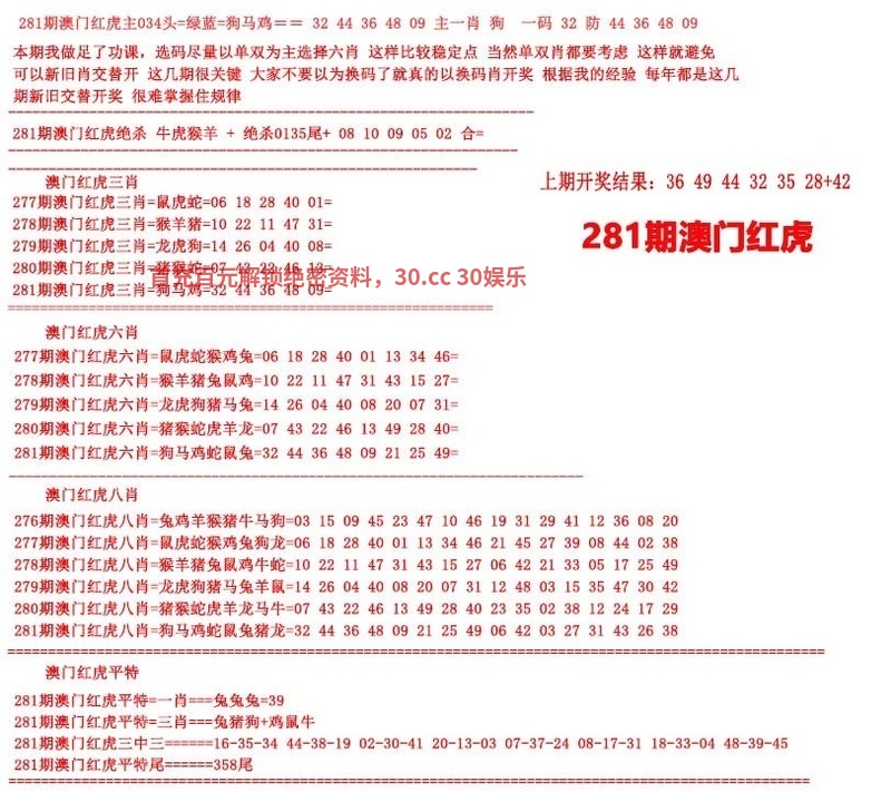 280期:【猴蛇牛羊兔猪鸡狗】开:鼠42准